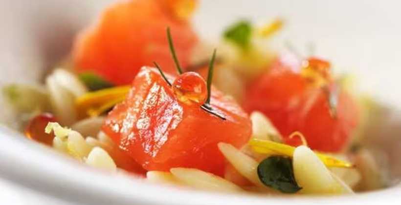 • Add the trout cubes and let them cook for 1 minute in the orzo before serving.